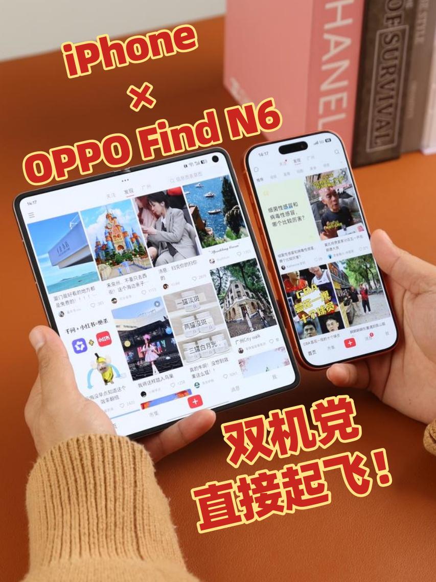 之前还蛮担心要是途中紧急加班怎么办,但现在我一手iPhone 17 Pro,一手OPPO Find N6根本不带怕的!