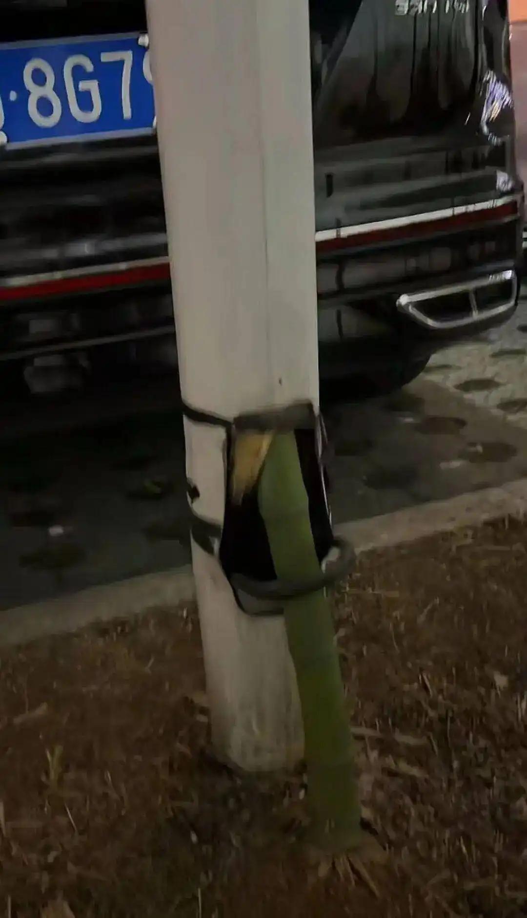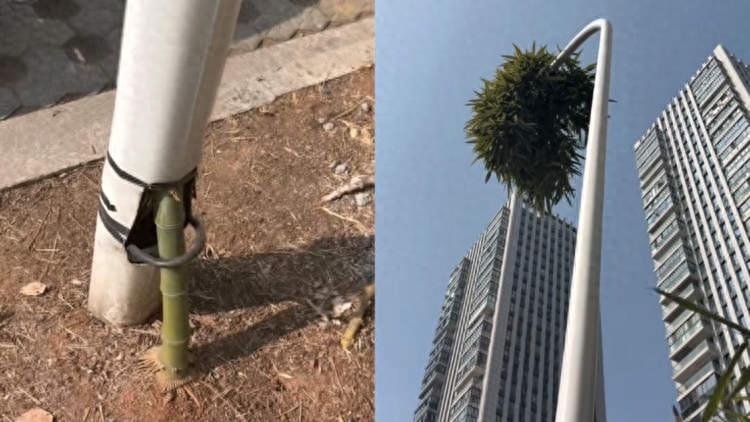 然而,这棵竹子不仅活了下来,还贯穿了整根灯杆子,在顶部冒出郁郁葱葱枝叶,如此坚韧的生命力,它被网友戏称为“竹坚强”。