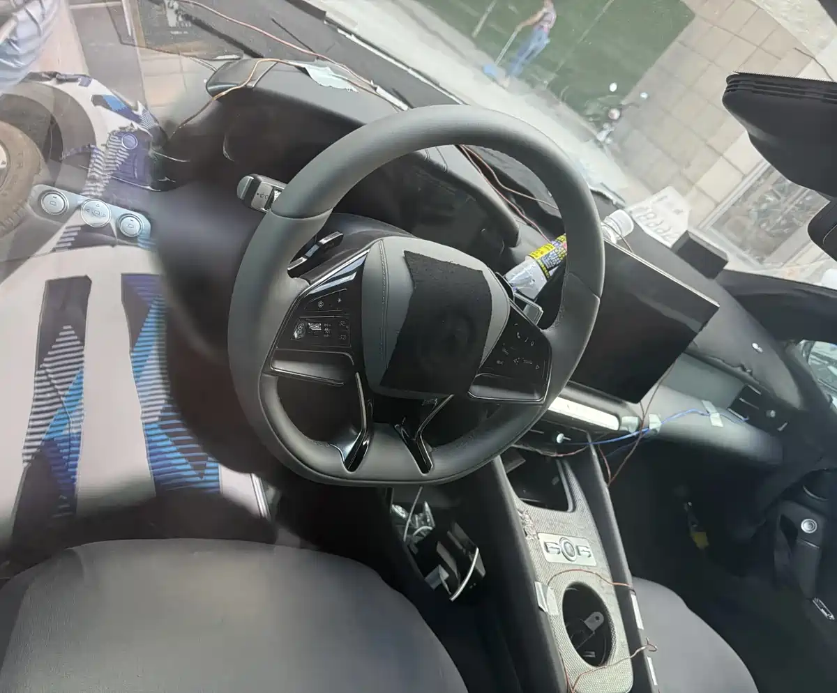 接着来看内饰,新车的内饰和此前曝光的照片基本相同,分别是悬浮式方形屏+仪表,科技感倒也不俗。整个内饰依旧以简洁为主,看上去很清爽,符合大家对新能源车该有的印象。中控区域还提供了无线充电,毕竟国产车,配置之类的不会让我们失望。