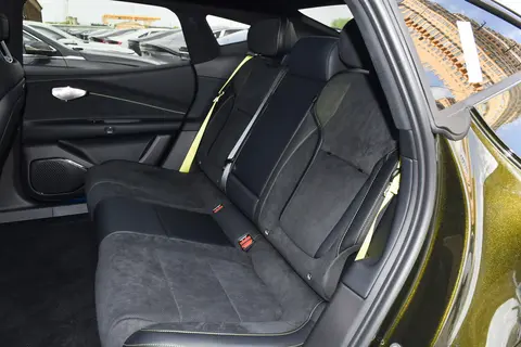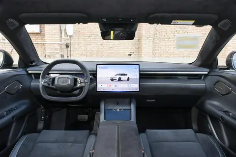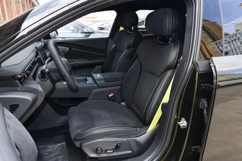 转到车尾,贯穿式的尾灯挺简洁大方的,亮起来的时候效果不错,显得车尾更宽了。有意思的是那个主动式电动尾翼,跑高速的时候会自己升起来,既能让车更稳,又多了点运动感,挺会玩的。下面那个熏黑的扩散器,看着就很有性能范儿,像是在说 “我可不是好惹的”。