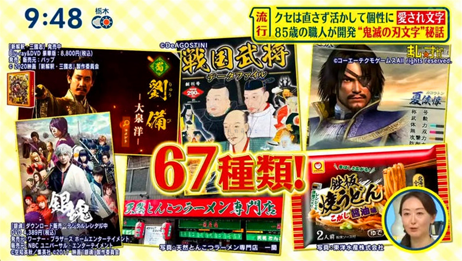 值得一提的是:一款字体一般要写7000个以上的字,才能满足日常使用。老爷爷一天到晚都在写字,估计是他的爱好,否则想想都会崩溃吧。而他们公司近年来卖的最好的作品就是名为“闘龙”、“阳炎”的两款字体,当然,两款字体虽然早就在贩卖中,只是因为被广泛运用在《鬼灭之刃》动画中而爆红。《鬼灭之刃》多红啊,导致粉丝也跟风购买使用。