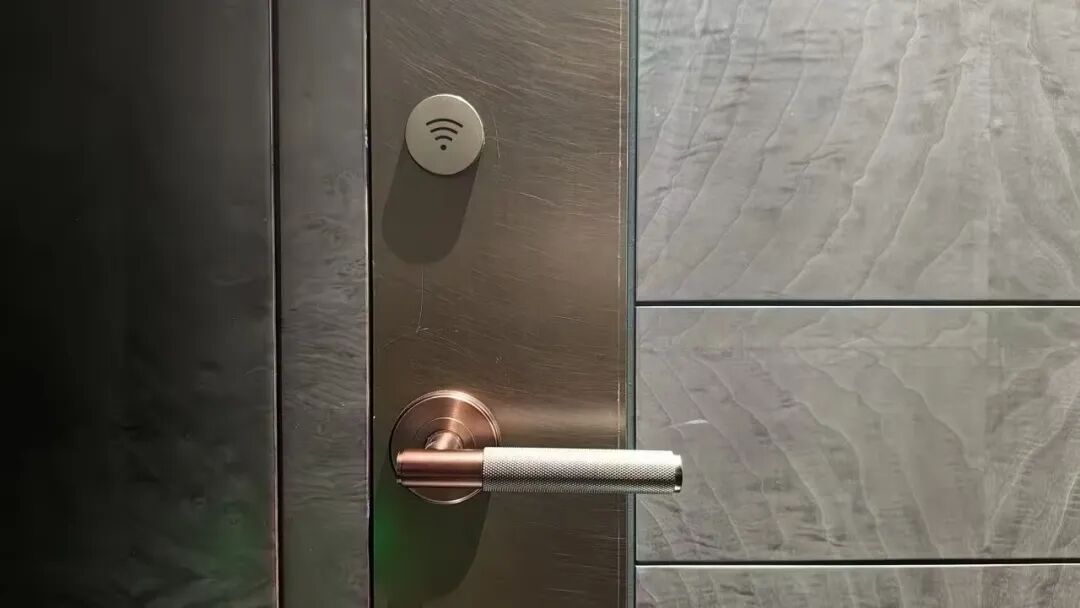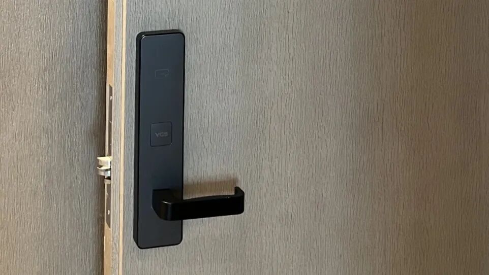 杨格酒店锁采用简约大气的直板式设计,灰色的磨砂质地搭配黑色边框,质感出众,与酒店整体的现代商务度假风格相得益彰。