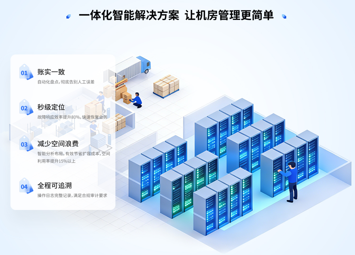 位安装微型传感器,设备上架瞬间自动识别位置,实时同步到管理平台。就像给机房装了一套"监控系统",只不过监控的不是画面,而是资产数据。