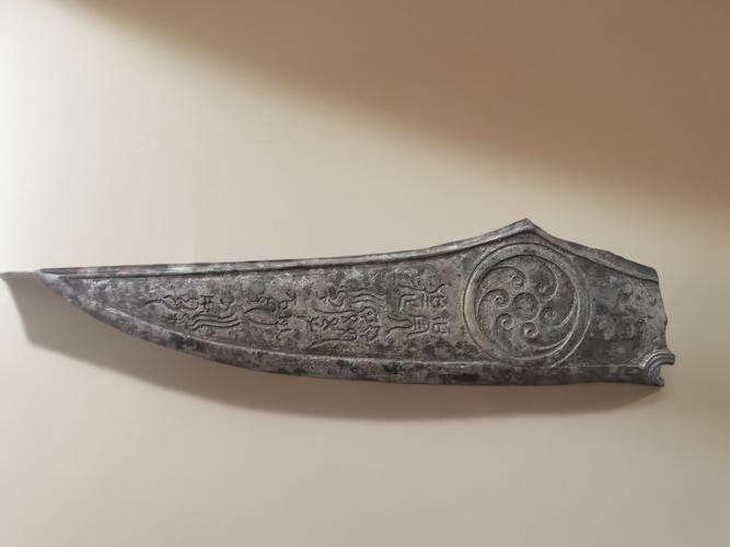 刀身全是赤褐色的污渍,还刻着一些看不懂的文字,很是诡异。
