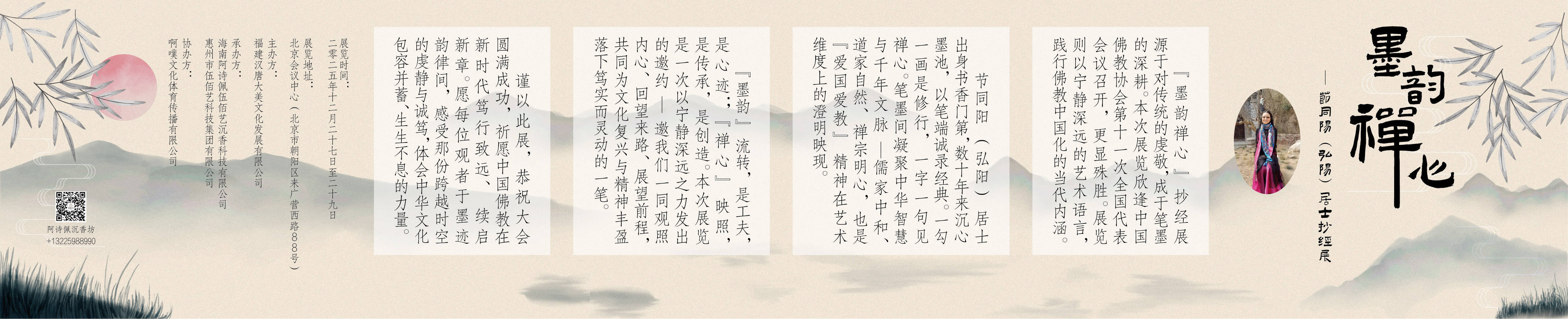 与中国佛教协会第十一次全国代表会议同期,一场由海南伍佰艺沉香科技承办的“墨韵禅心”节同阳(弘阳)居士抄经艺术展于北京会议中心会议楼一层大厅成功举办。展出作品涵盖节同阳居士手抄金刚经、楞严咒、心经、道德经、佛说四十二章经等共计八十六幅。