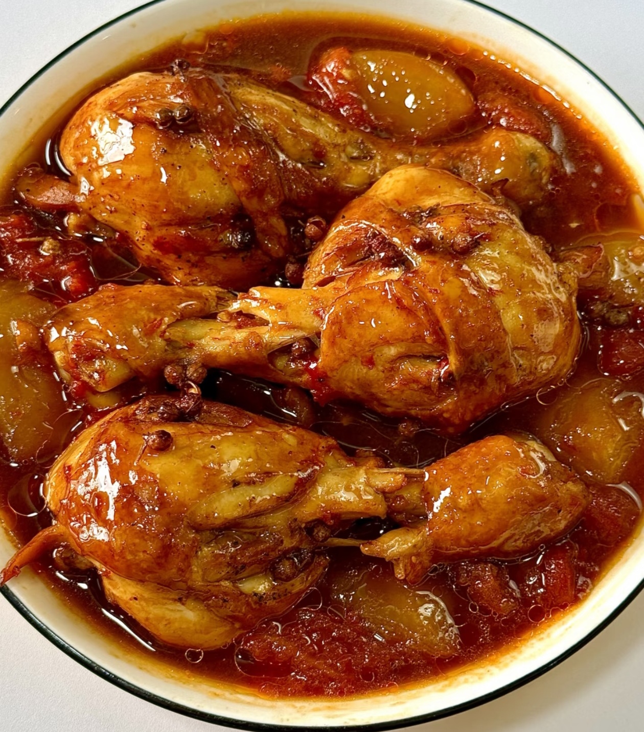 开盖的瞬间,番茄已经炖得软烂出沙,汤汁变得红亮浓稠,土豆吸饱了肉汁,鸡腿用筷子轻轻一戳就能脱骨,油亮的酱汁裹着每一块食材,光是看着就让人食欲大开。盛上一碗米饭,舀几勺浓稠的汤汁拌进去,再配上一块软烂的鸡腿,肉香混着番茄的酸甜,每一口都是满足。这道菜没有复杂的调味,也不用守着灶台翻炒,却能把家常食材的味道发挥到极致,不管是独自吃饭,还是和家人一起分享,都是能让人心里一暖的味道。