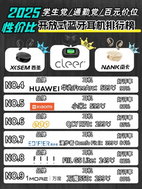 选择开放式耳机时,建议优先考虑具备声学研发实力的品牌。这些厂商在调音算法、佩戴结构和材质细节上更有经验,产品耐用度与音质表现也更稳定。像漫步者、小米、西圣、声阔等品牌,都在开放式耳机领域积累了不错的口碑。