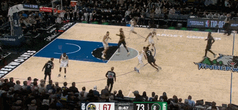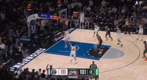 和勇士考验布劳恩的挤掩护有点区别,森林狼的整体身高更高,除了将约基奇留在篮下是优先选项,其他的球员难免都会出现对位,但是如上图所示,戈登的移动确实也限制了球队的防守弹性,杰登甚至不需要掩护就可以直接利用速度单挑。