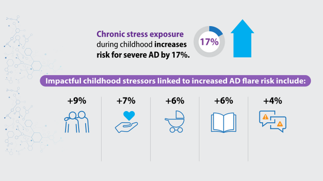 特应性皮炎(AD)与压力之间的联系已有充分的文献记载,因为已知压力会扰乱下丘脑 - 垂体 - 肾上腺轴和交感 - 肾上腺 - 髓质轴,损害表皮屏障功能,并促使搔抓行为,这会进一步加重特应性皮炎。然而,关于个体患者群体中特定压力源的数据有限。