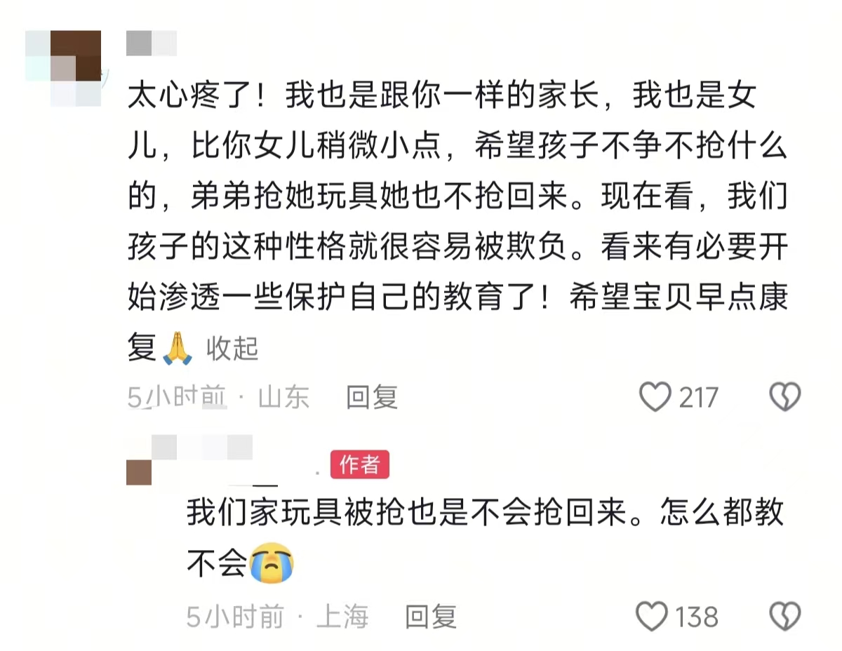 妈妈在配文里说 “是妈妈教育有问题,不该教你过于友善”,这话戳中了太多家长的纠结:
