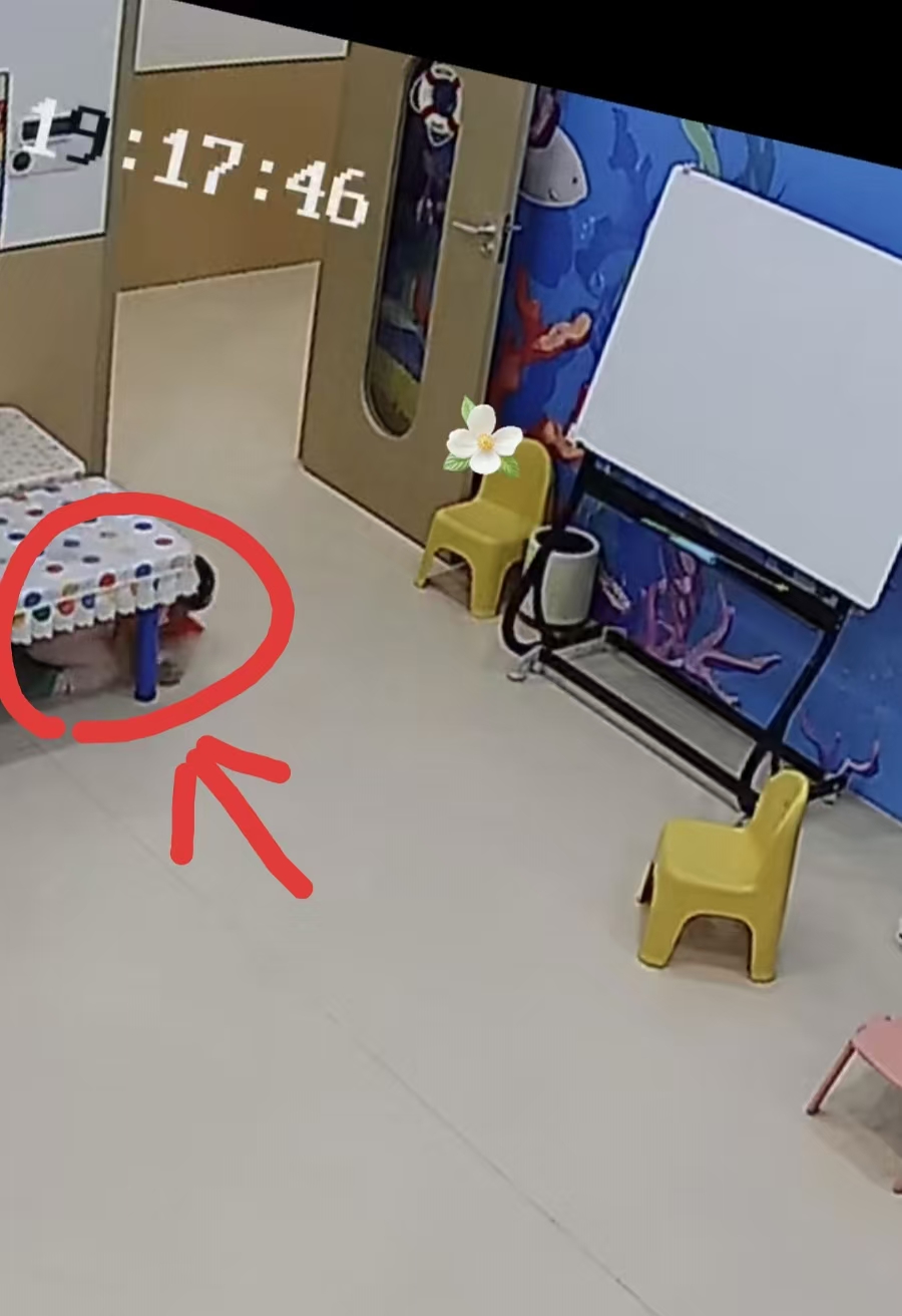 之前还和妹妹一起玩滑滑梯的姐姐,这会儿却没了课间的活泼劲儿,反而安安静静趴在教室的桌子底下,眼睛还盯着门口的方向。