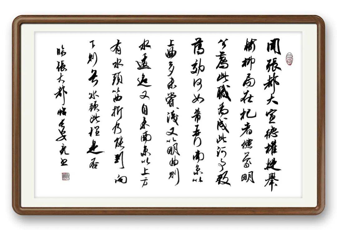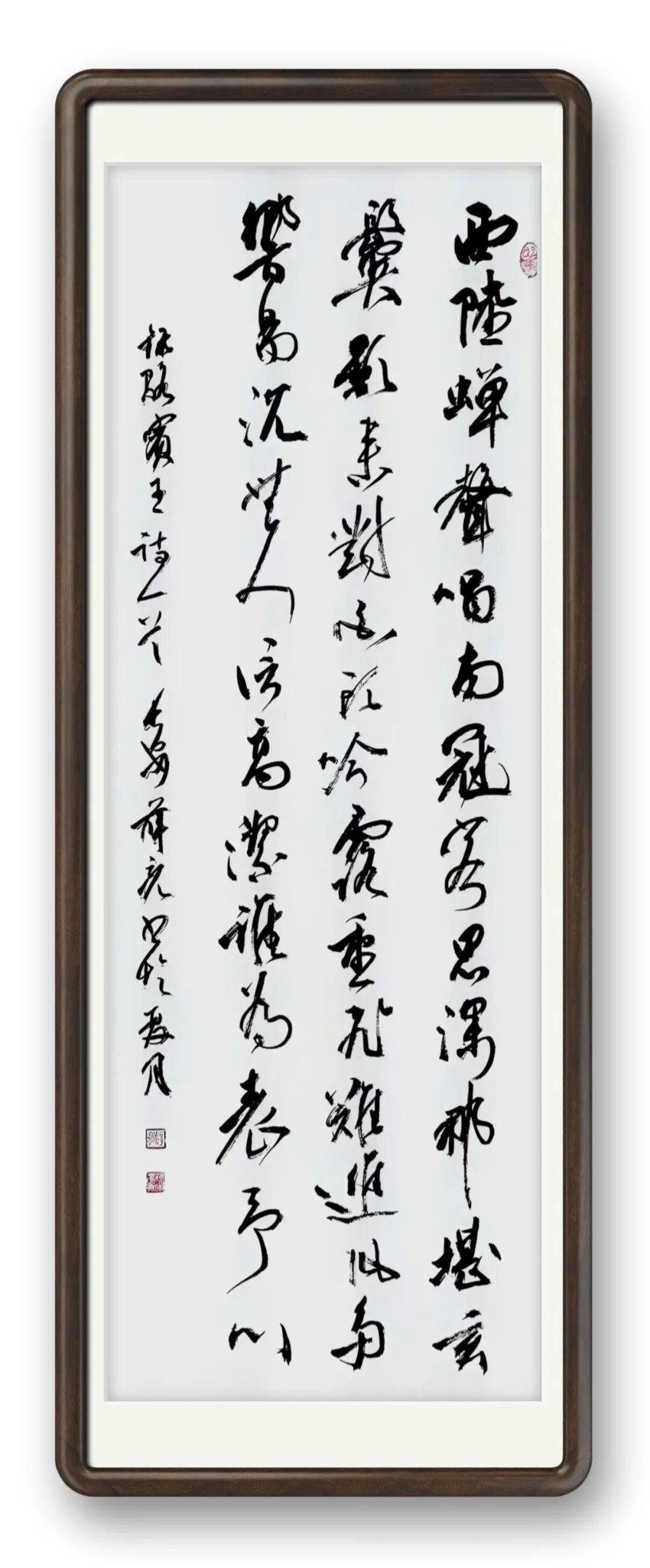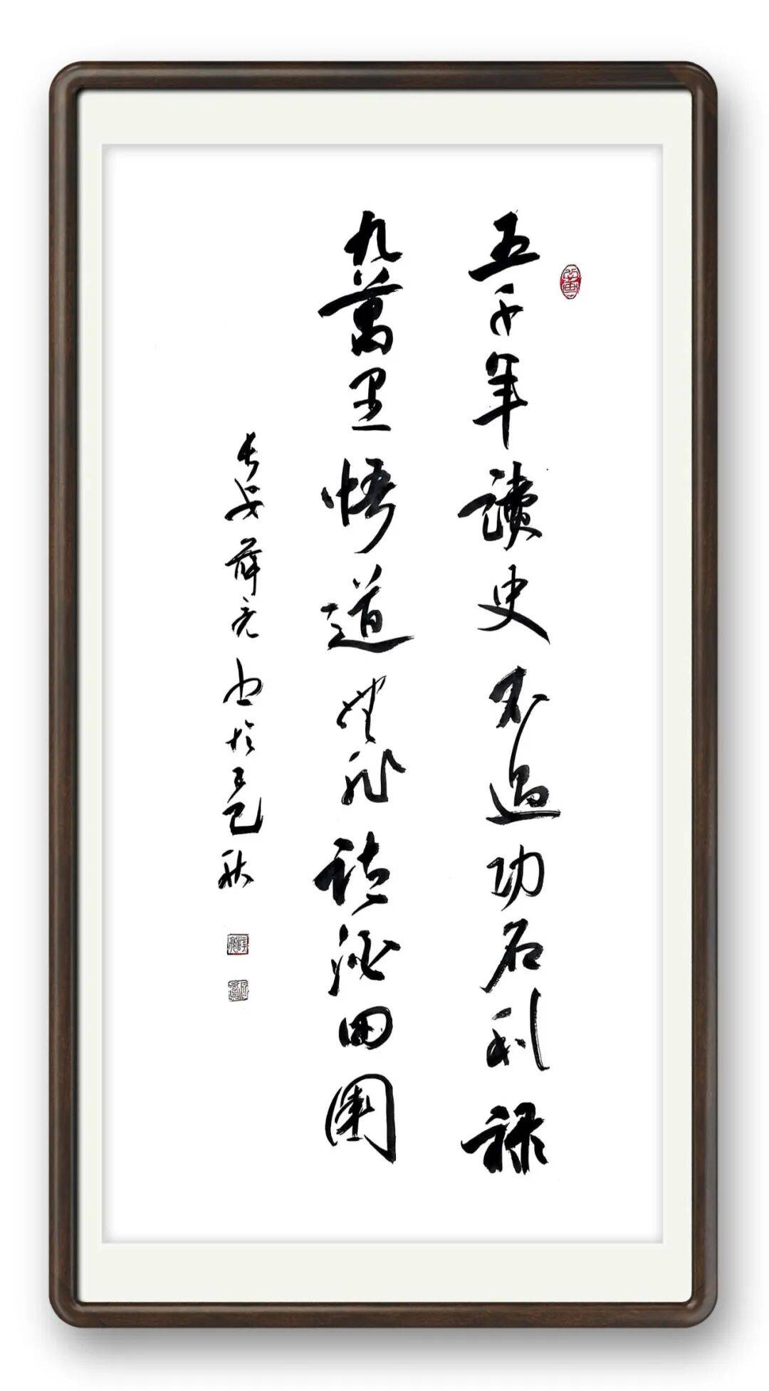 先生的书法,最显气象处,在其“放得开、收得住”的从容。落笔果断快捷,成形不加修饰,没有刻意描摹碑刻圭角的拘谨,反倒藏着几分骄横野犷的真意。这种自由挥洒,不是无法无天的肆意,而是胸有丘壑后的通透。看他的字,或如苍松立崖,刚劲挺拔;或如闲云出岫,飘逸出尘,每一笔都带着个性,每一字都藏着情绪,引人沉心入境,于笔墨间得心灵启迪。