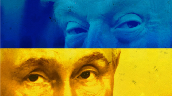 Axios报道此消息时,用的是下面这张图:二普的局部头像,印在乌克兰的国旗色上,似乎正虎视眈眈于乌克兰的领土。