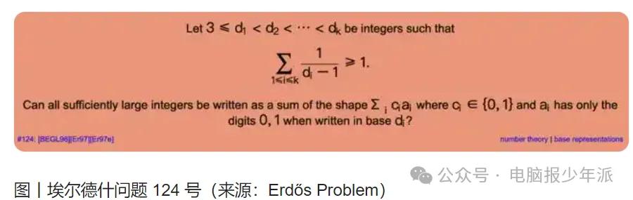 埃尔德什问题#124自1995年提出以来,一直是组合数论领域的顽固堡垒。其核心命题探讨:给定k个不小于2的自然数dᵢ,若∑1/(dᵢ-1) ≥ 1,是否所有足够大的自然数n都能表示为特定0-1组合的和?这个看似简洁的问题,却让数学家们在最大公约数(gcd)约束和边界案例验证中陷入长达三十年的僵局。