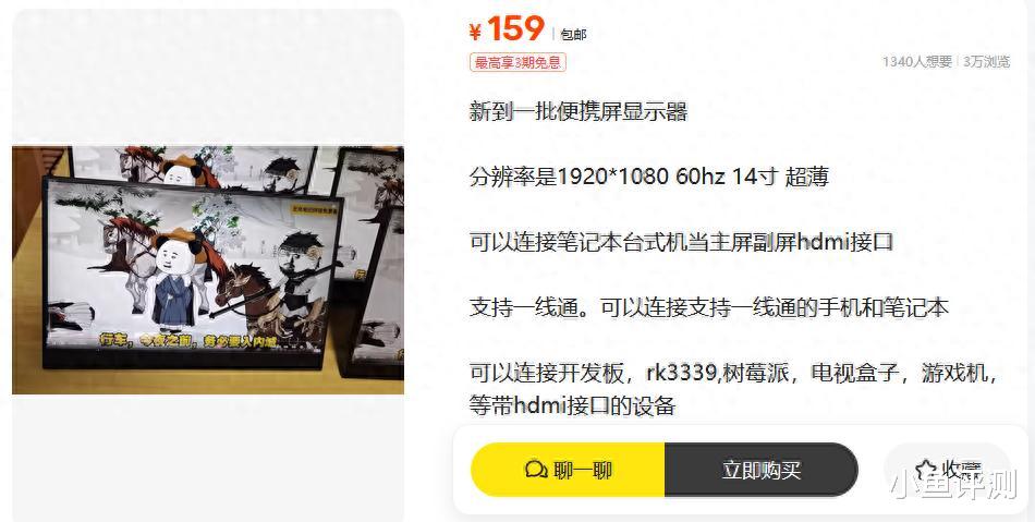 最近在二手鱼里闲逛,真的被我挖到个稀罕物。一台14寸的便携显示器,你敢想,标价只要159块。这价格,别说现在了,往前倒腾几年,也几乎是“白送”级别。这不就是一顿饭钱吗?