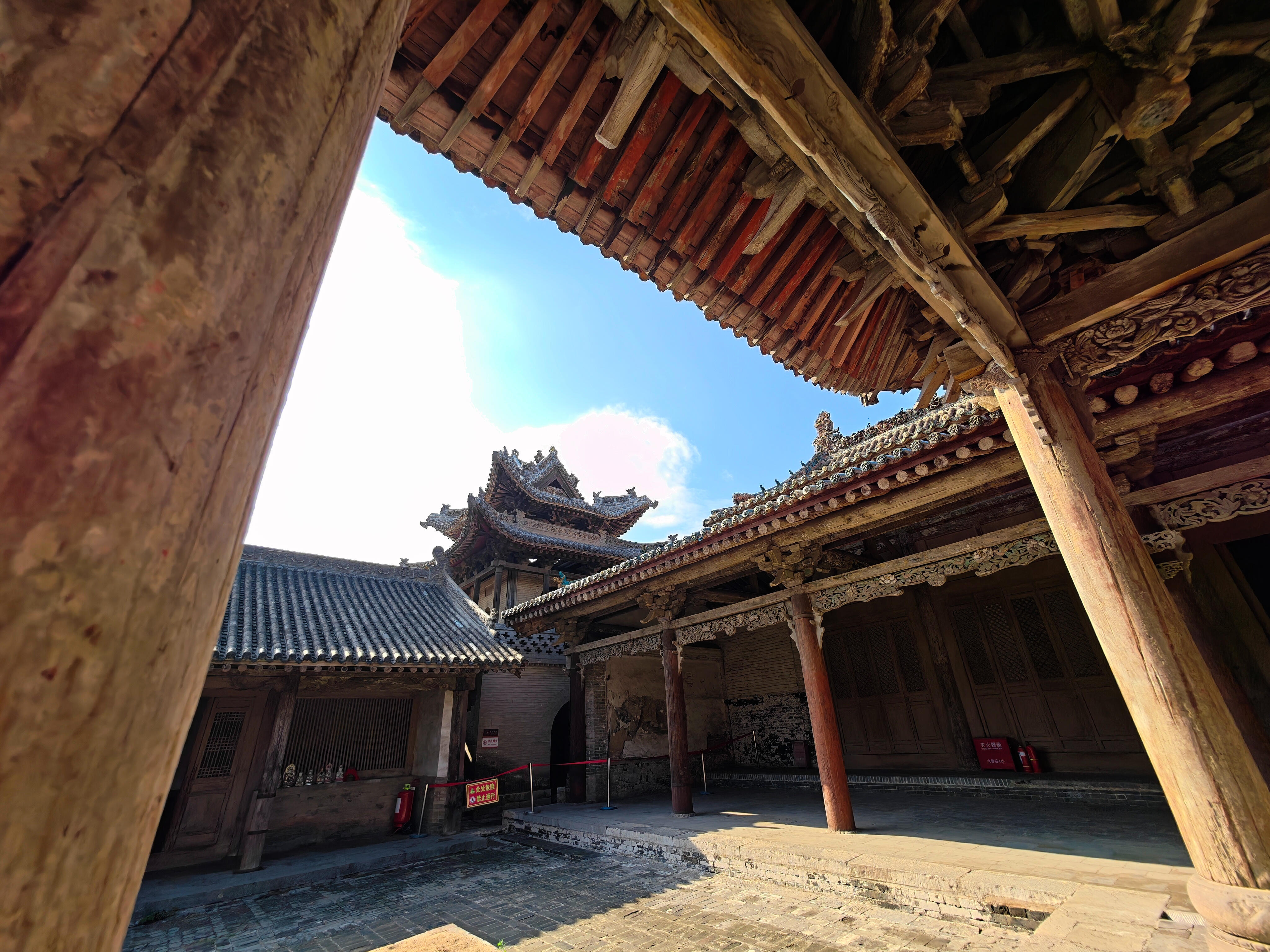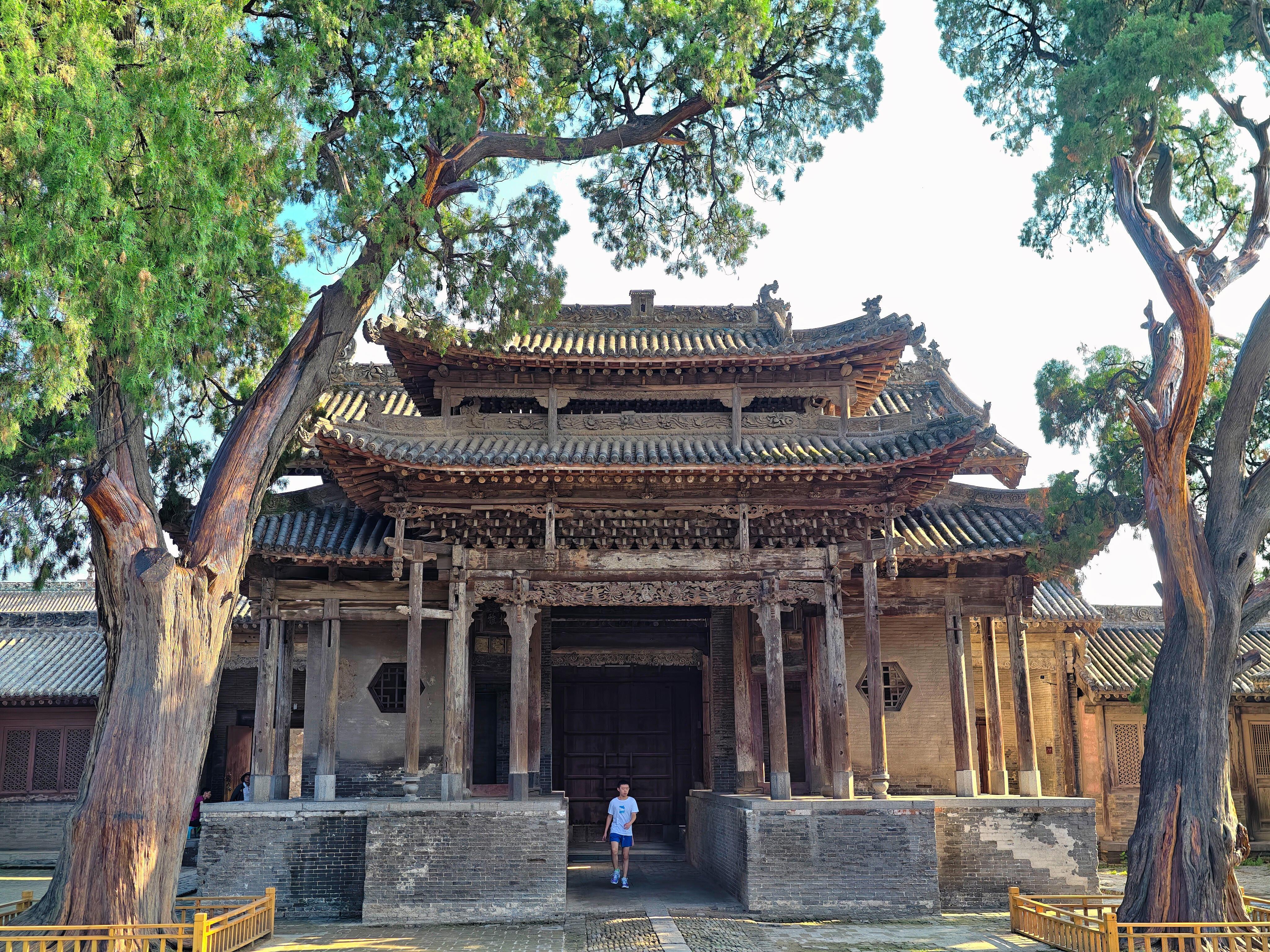 从临汾往襄汾走,车窗外的风景刚从热闹的景区广告牌换成成片的玉米地,汾城古建筑群的青砖灰瓦就忽然撞进了眼里。和那些挤满游客的山西名寺古刹不同,这里的大门虚掩着,推开门时,门轴发出“吱呀”一声响,在空荡荡的巷子里荡开,竟没有第二声回音——整个建筑群里,连风都好像放轻了脚步,只留我们几个人,站在院子中央,对着满院的古朴建筑和苍柏发愣。