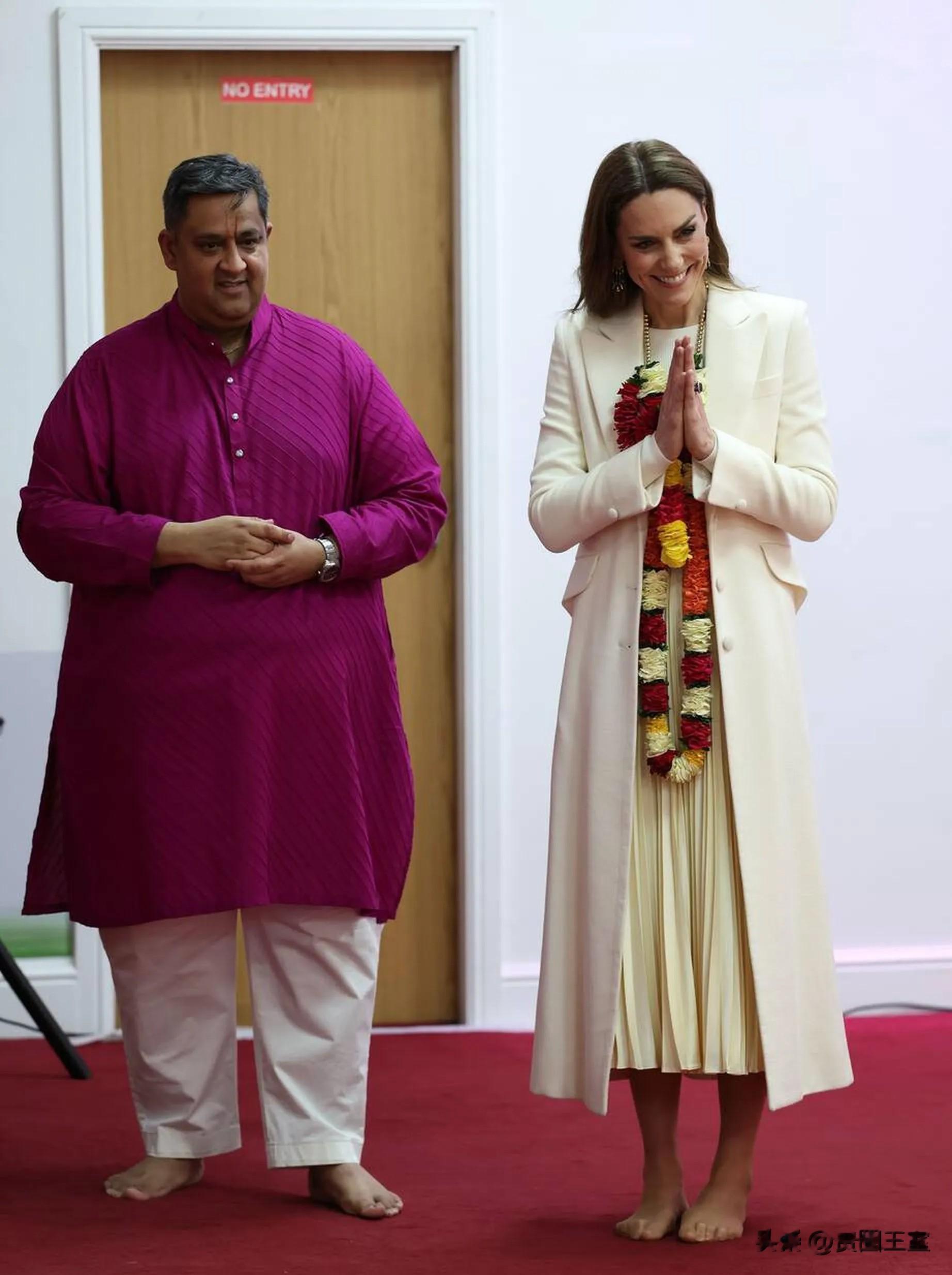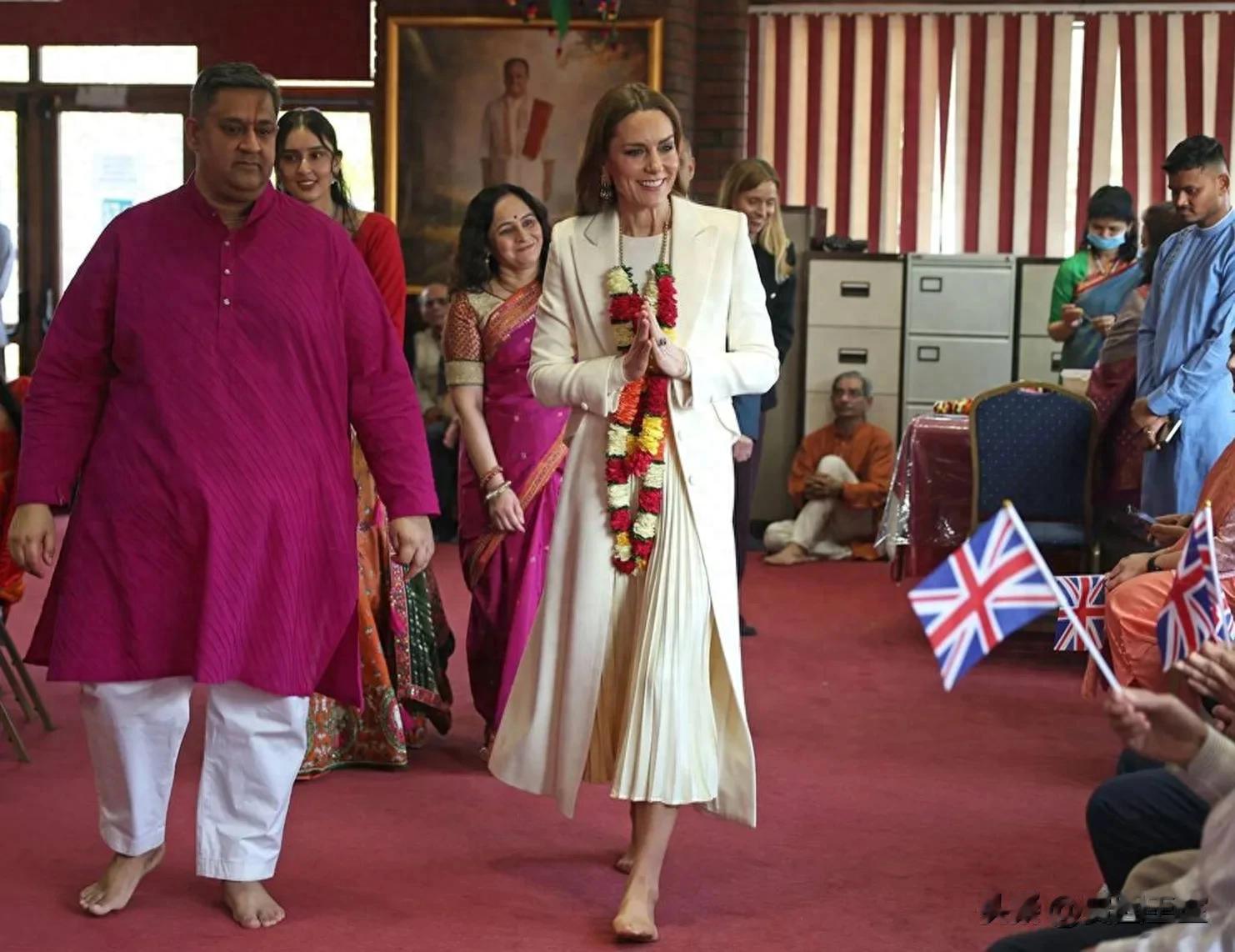 凯特王妃在访问Shreeji Dham Haveli印度教寺庙期间,按照习俗,她脱掉了高跟鞋,就是这一举动,暴露了她的生理特征。