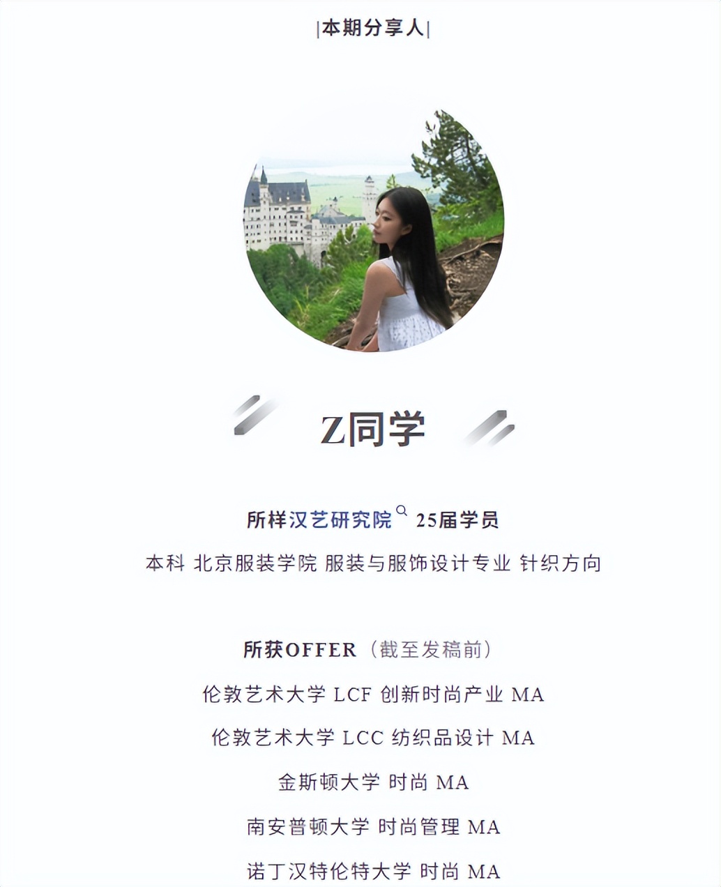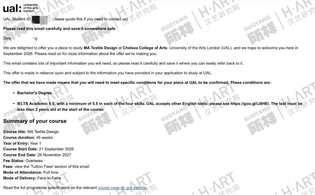 高中的时候,由于疫情原因,我错失了本科留学的机会,但从那时起,我就暗自定下目标——研究生一定要去英国!去伦艺!