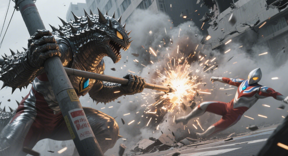 怪兽发出震天的怒吼,反手抄起路边的电线杆,狠狠砸向迪迦。金属碰撞的巨响中,迪迦被击飞出去,撞塌了半栋大楼。小悠看着尘土飞扬中挣扎起身的巨人,突然想起父亲说过的话:“光的力量,需要人类的勇气才能绽放。” 他咬咬牙,捡起掉在地上的信号弹,冲向混乱的街道。