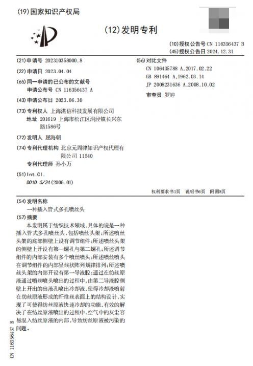 在中空纤维膜装备制造领域,技术创新是企业立足市场的核心。上海湛信科技发展有限公司(旗下品牌“上海鑫高度”)凭借“多孔中空纤维膜喷丝装置”(授权公告号:CN106435788B)及“插入管式多孔喷丝头”(授权公告号:CN116356437B)两项专利,持续领跑行业技术前沿。