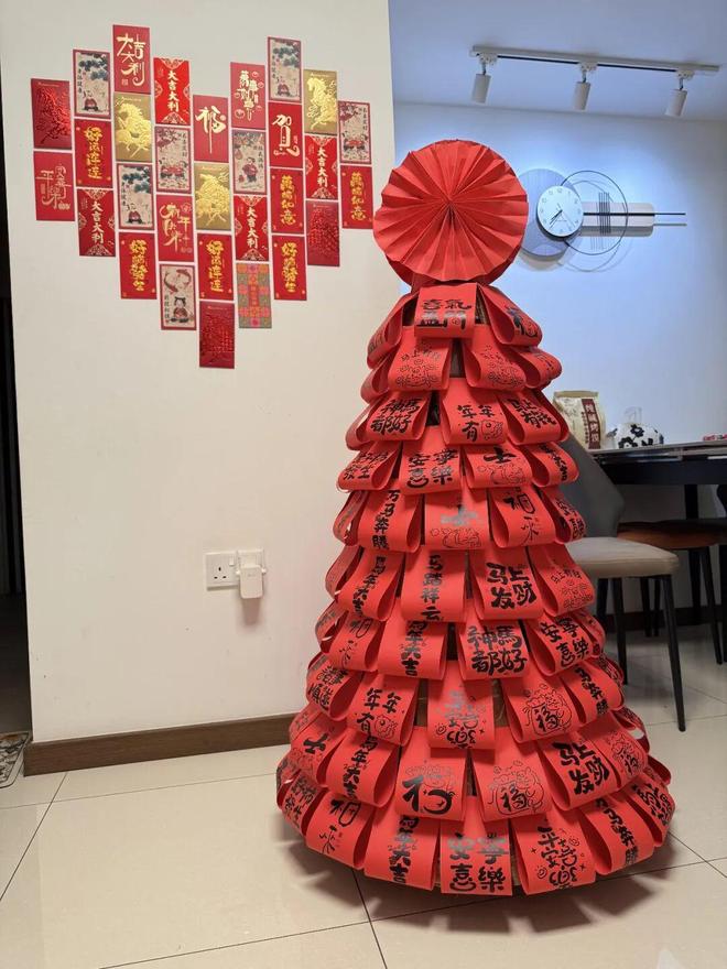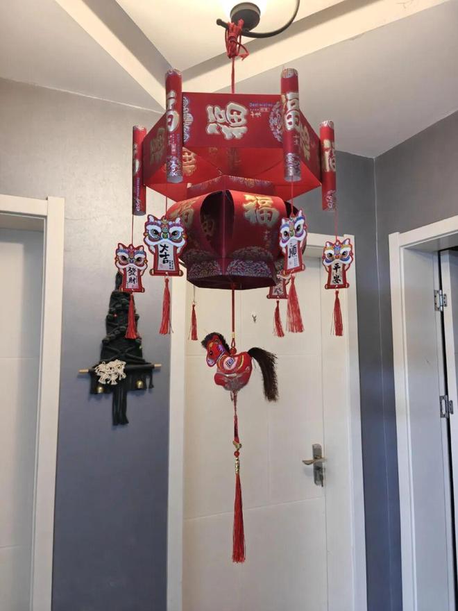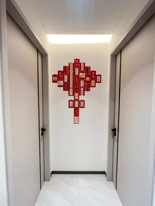 另外,像家里的过道墙面,还可以用红包拼成一个“中国结”,这年味一下就挠出来了。