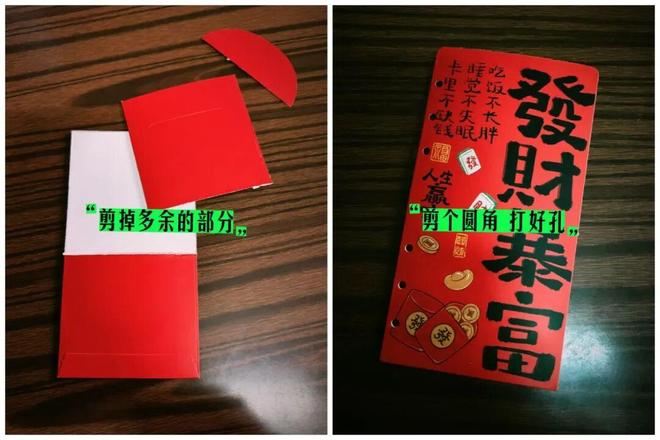 只需要剪掉红包多余的部分,再修剪出4个圆角,并做好打孔处理,就可以放进活页本里收纳了。