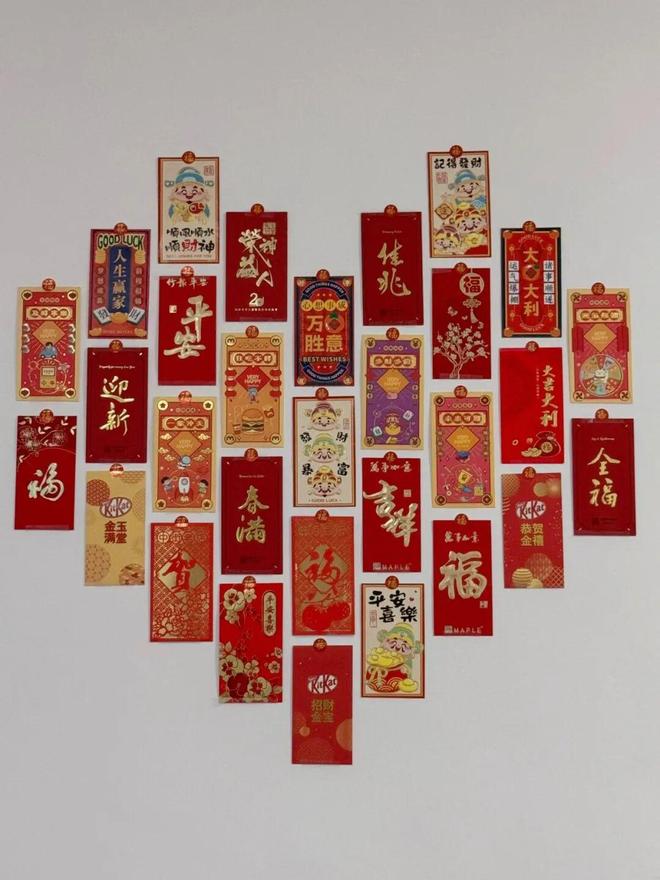 新年想装饰家,根本就不用去买装饰画,那些剩下来的红包,本身就是现成的“节日素材”。