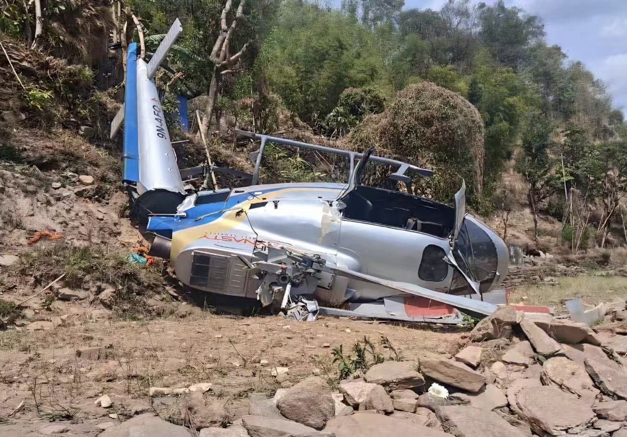 现场画面显示出, 直升机就像折了翼的蜻蜓一样栽倒在泥土里,具有讽刺意味的是,机上的遗体倒是情绪稳定,而负责护送的5个活着的人却实实在在经历了一回死里逃生,其中有一位74岁的老者腿部受伤,随后被另一架代号为9N-ANA的救援机紧急送到加德满都进行医治。