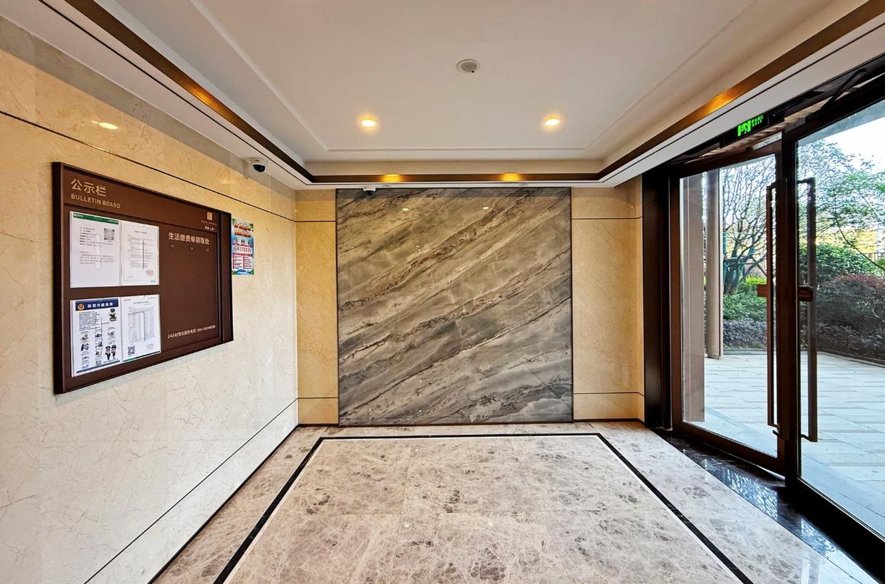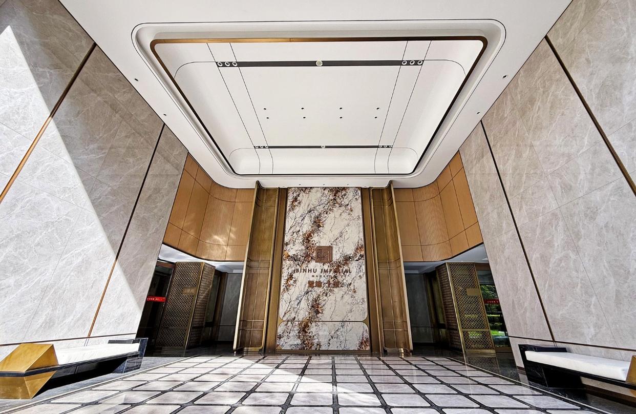 电梯厅不仅空间宽绰,多个位置还使用了奢石或岩板进行装饰。