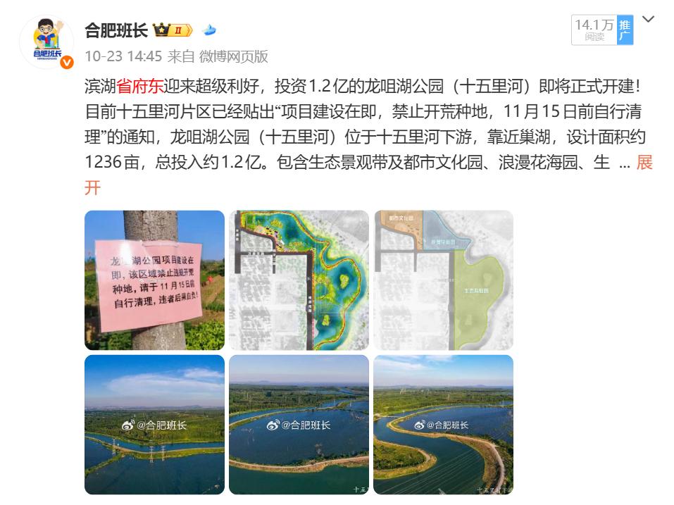 网传信息显示,投资1.2亿的龙咀湖公园(十五里河)即将正式开建,设计面积约1236亩,包含生态景观带及都市文化园、浪漫花海园、生态科教园三大主题区域。