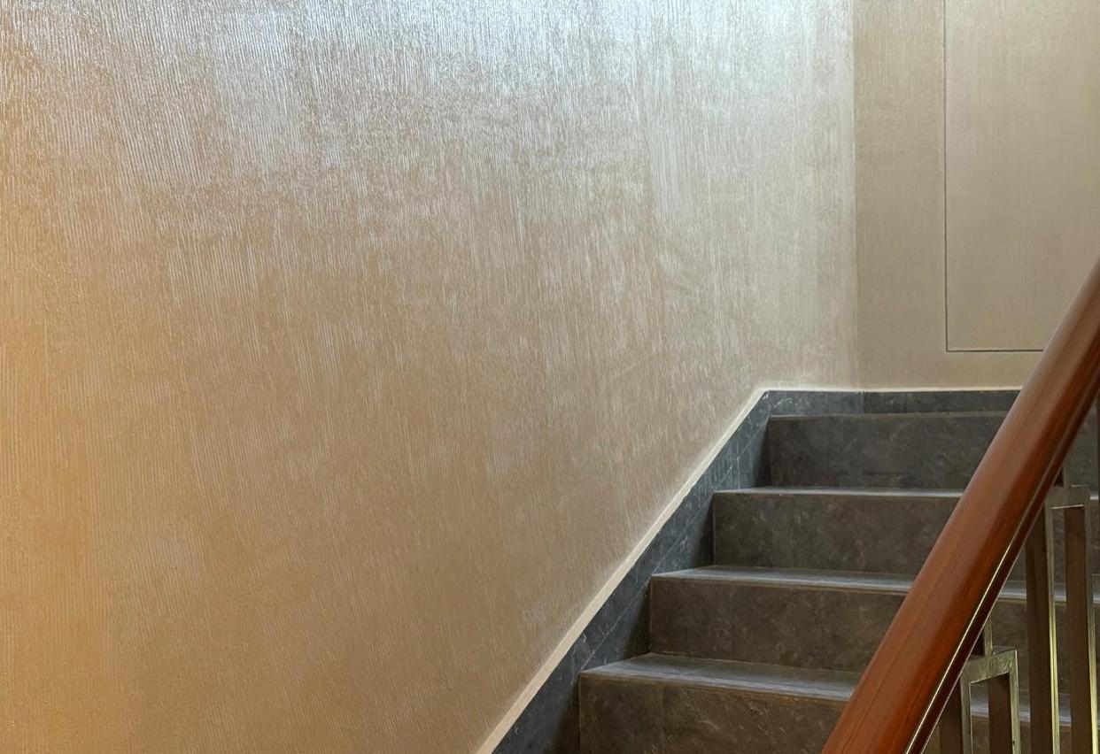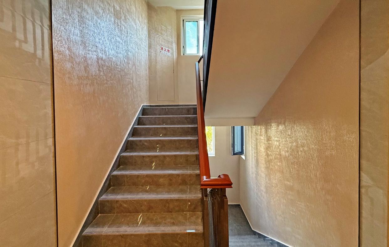 消防楼栋从1楼到顶楼全部贴有地砖,更让人意外的是墙面也做了特殊处理,打造出了墙纸或墙布的质感,有了解这是什么工艺的吗?