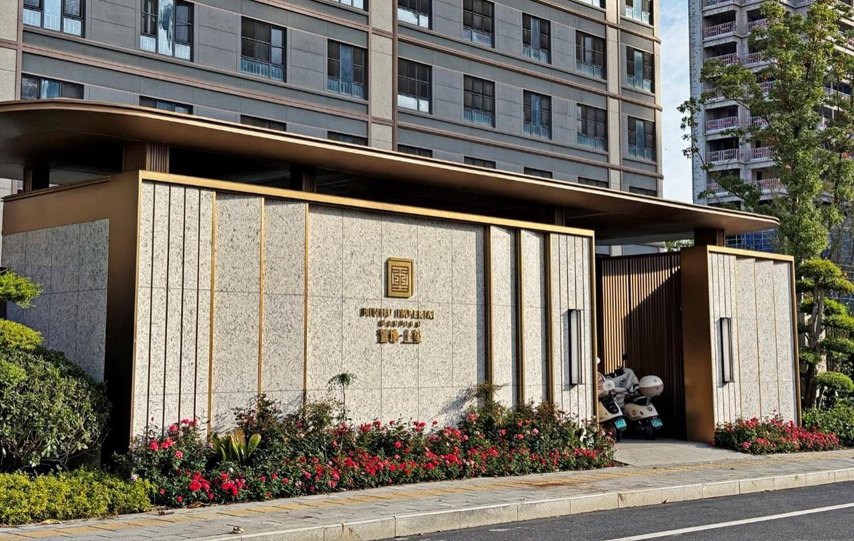 小区主出入口设在西侧泉州路,尺度较大,外立面以香槟金铝材为主调,搭配大面奢石,高贵典雅。