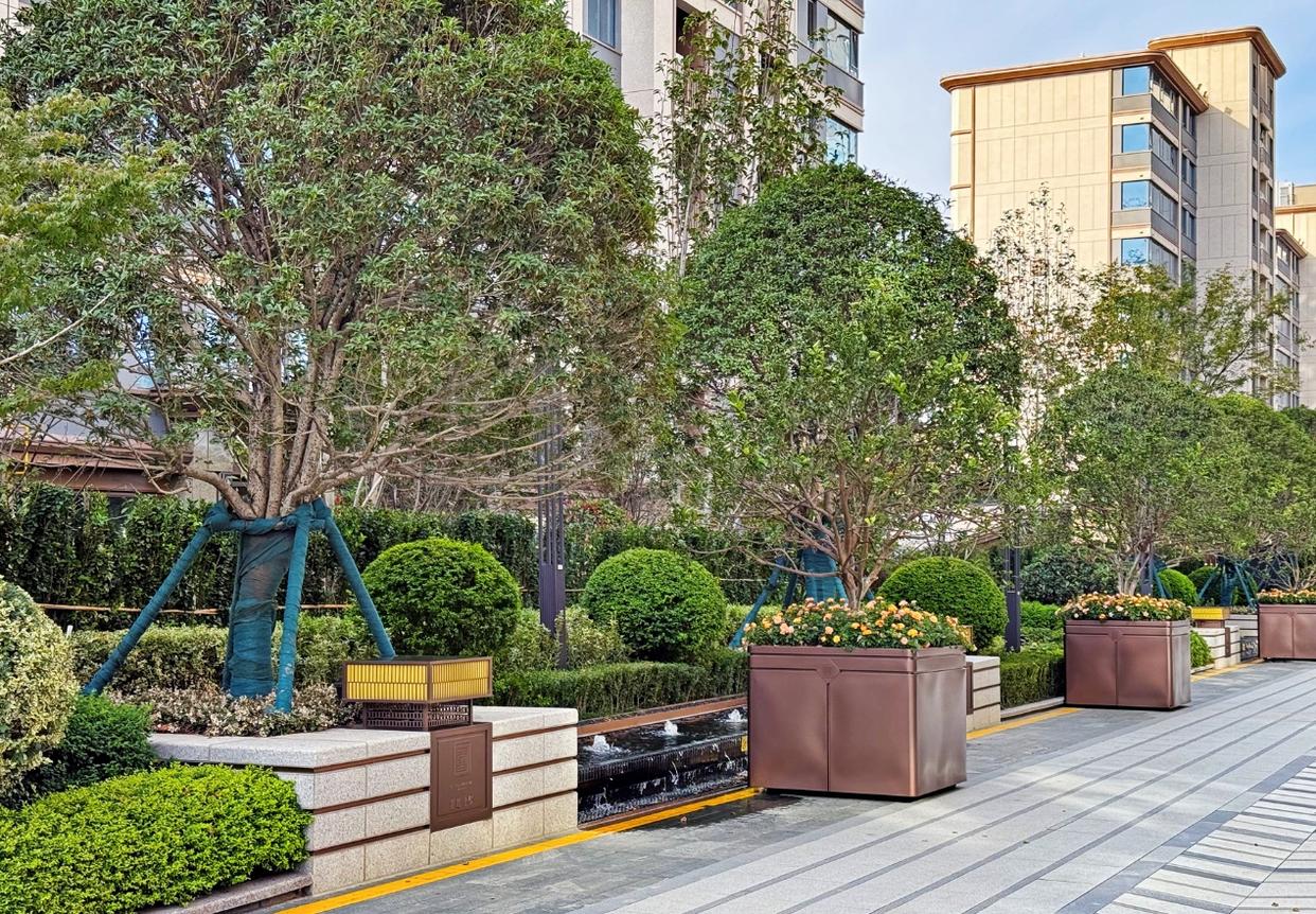 从西侧进入小区后,首先看到的就是搭配水景的迎宾树阵,高大的金桂和乌桕、低矮的各类灌木相得益彰,还有移动花箱种植金桔、香泡和应季花景,让景观更显丰富和层次感。