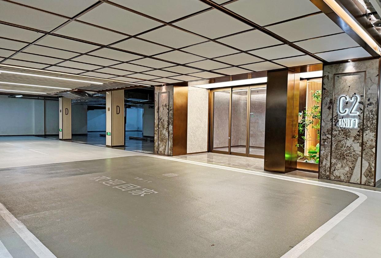 我们再来看一下地下空间,地下车库整体采用淡雅色调设计,与小区整体风格统一。