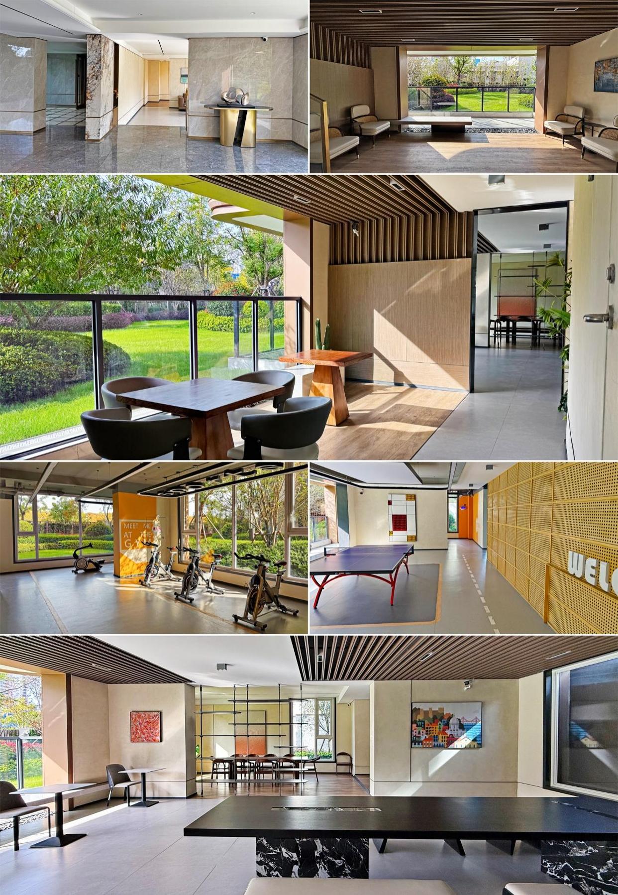 部分楼栋一楼设置有架空层,分成城市会客、儿童娱乐、体育运动等不同主题,外凸飘窗式设计,将更多户外光线和景观引入室内,设计上还是很用心的。