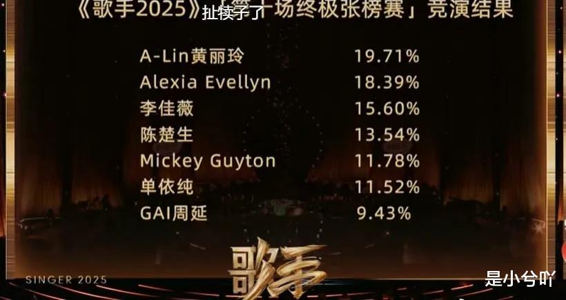再看看这一季的前三长期霸榜选手都是哪些吧,外国歌手就算了,国内的主要是单依纯,陈楚生之类的。李佳薇确实很有实力,可是这次直接就拿了第一,GAI直接被淘汰,讽刺的是还是林志炫踢榜让GAI淘汰的。