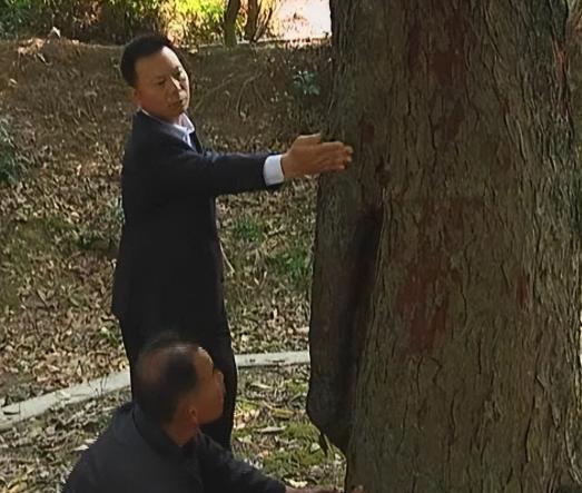 正当他仰着头仔细打量树冠时,脚下突然“咔嚓”一声,原来是踩到了一块掉落的树皮。