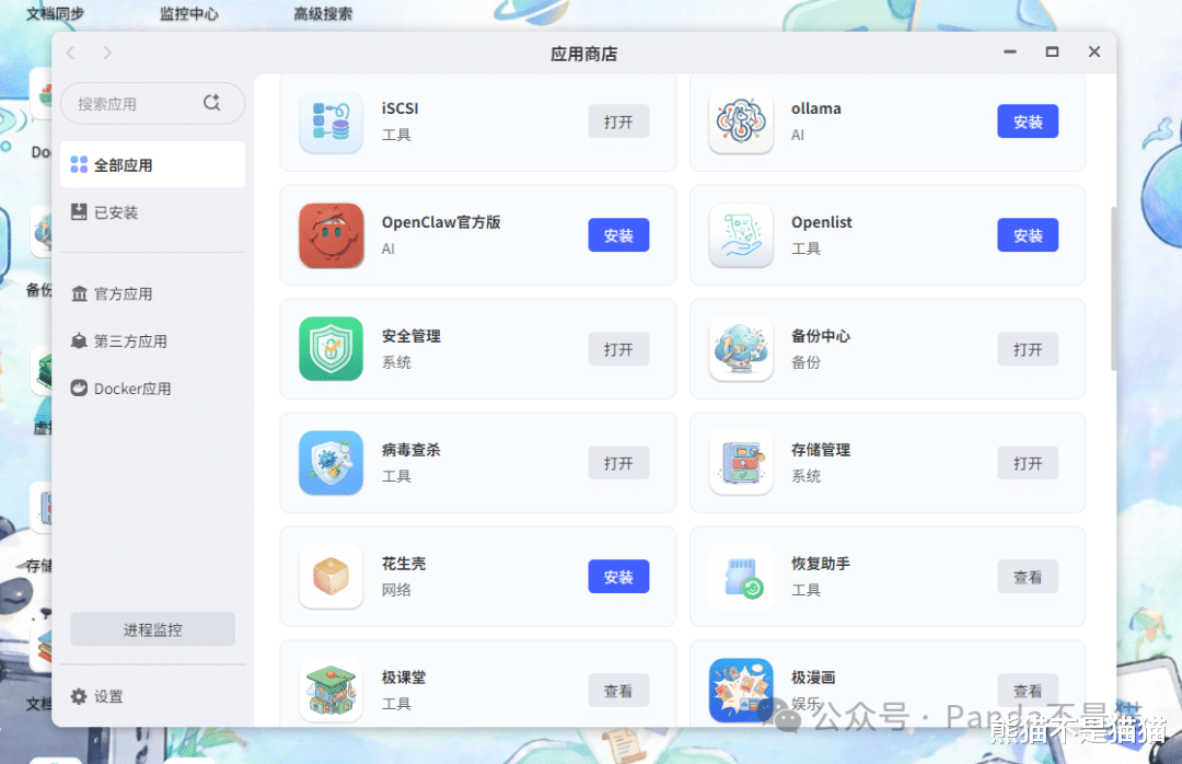 目前官方一共为 63 个应用设计了图标,其中包括第三方应用和 Docker 应用。只要是能通过极空间直接安装的项目都是有图标的。这里又得说明一下,当你将图标改了之后不仅仅是桌面会改,同时更改的还有应用商店的展示效果。