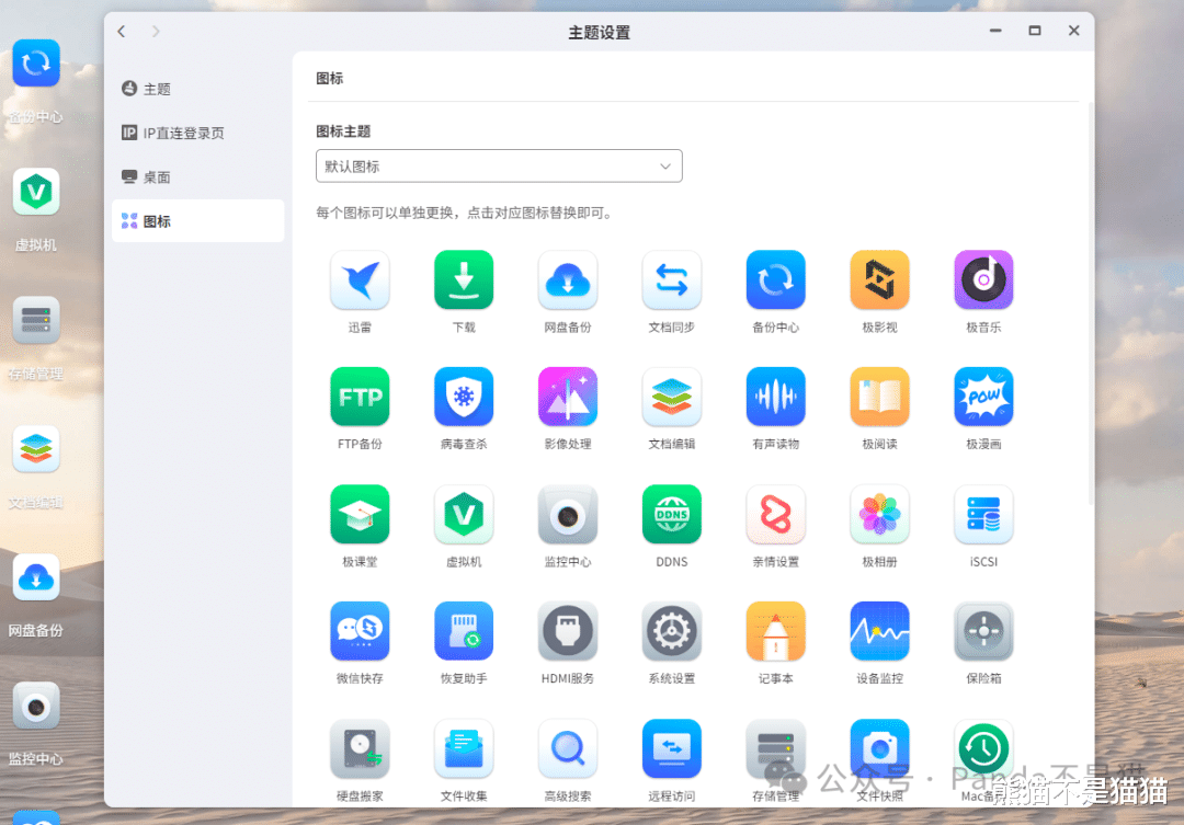 引言前段时间极空间更新了主题设置的功能,用户现在可以根据自己的喜好来设置 IP 直连的登录页、桌面以及最重要的图标替换。