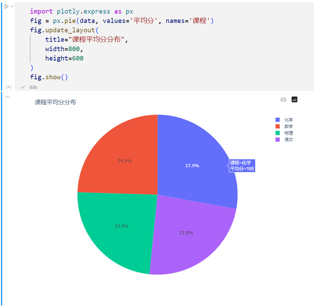 这里使用此数据绘制一个饼图来呈现课程平均分的占比,演示如何使用plotly绘制饼图