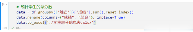 ValueError: Mime type rendering requires nbformat>=4.2.0 but it is not installed结合groupby和sum方法,按照姓名进行分组可以统计学生的总分数,sum对成绩一列求和
