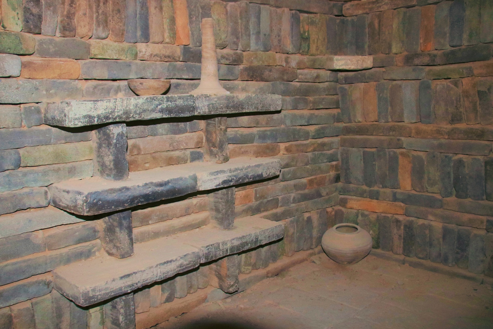 虽然墓室不大,“房间”却也充足,主墓室之外还有专门的厨房、卫生间等,因曾遭遇过盗墓,墓中珍贵物品几乎被洗劫一空,只留下少许陶罐等日常用品。