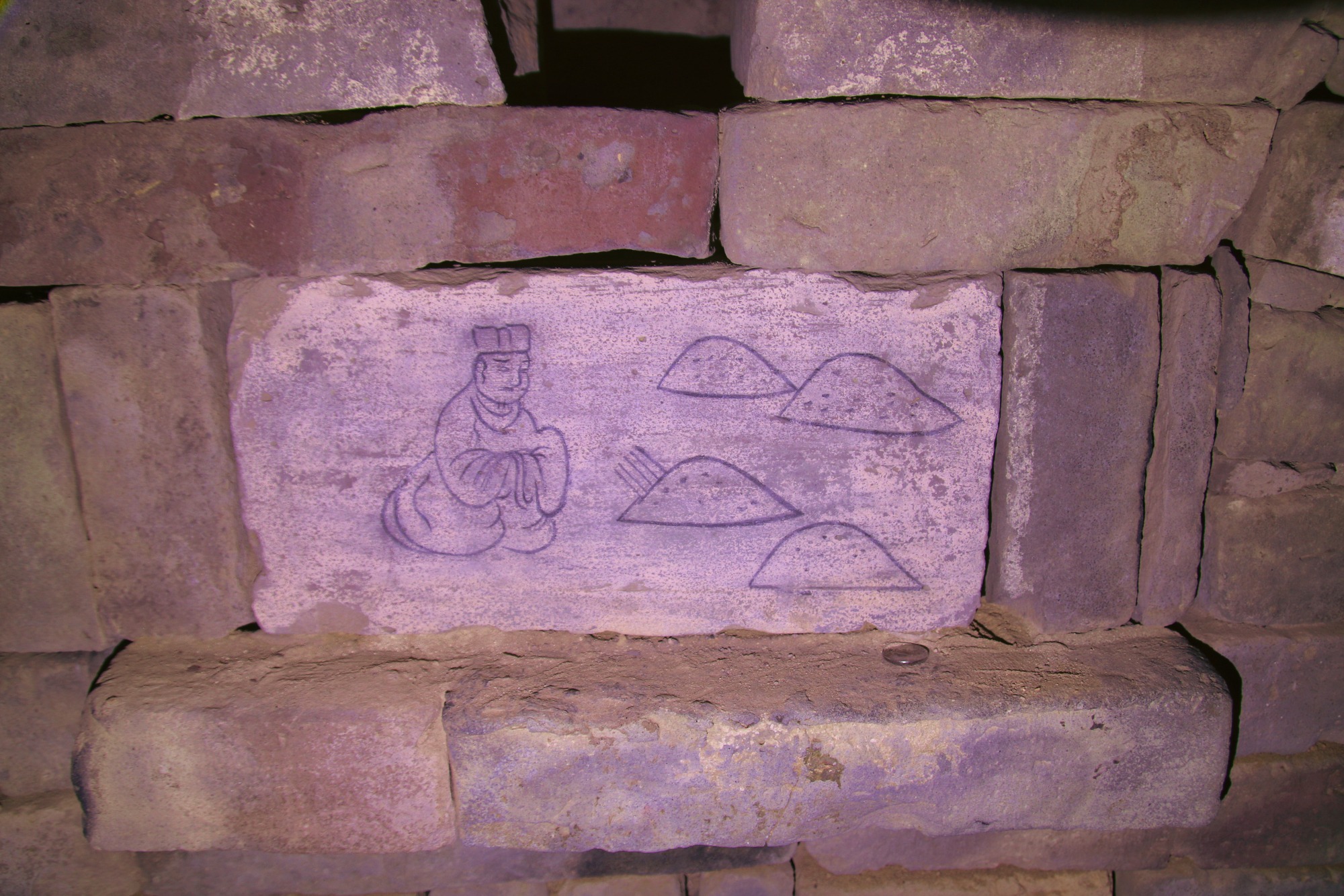 古墓里光线昏暗,砖石甬道逼仄狭窄,两边墙体伸手可触,质感粗粝,封闭的环境和静谧的空气让人有种身在《盗墓笔记》里的体验感。