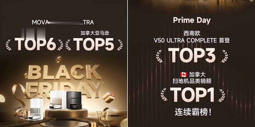 2025年北美Prime Day期间,MOVA创下全球GMV1.3亿里程碑,多品类获历史性突破。西南欧市场,扫地机高端旗舰首登TOP 3。