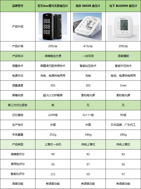 智能化功能真的能提升体验,比如直接听语音播报不用盯屏幕,历史数据一查就明白趋势,房颤监测也让操作更安心。没有这些功能,就得自己费劲记。下面简单看看几款血压计的设计特点。