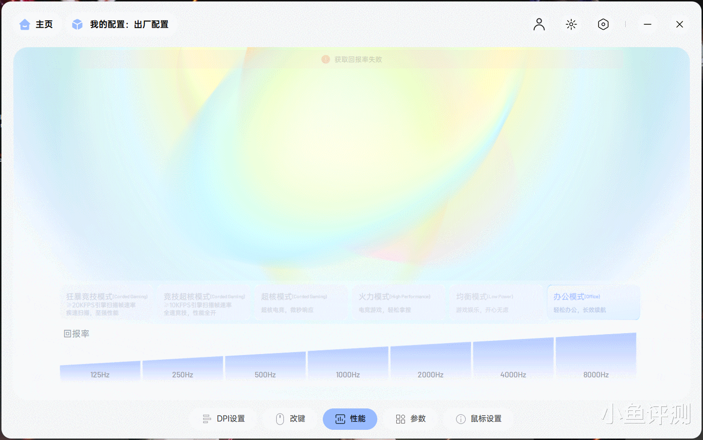当然,可能有人会说,8K回报率太费硬件,确实,但雷柏这次给足了选择权。驱动里提供了从125Hz到8000Hz足足七档回报率可选。平时上网办公,开个1000Hz就足够省电;真要上战场拼刺刀了,再切到8K。这种“性能按需分配”的思路很成熟,不盲目。