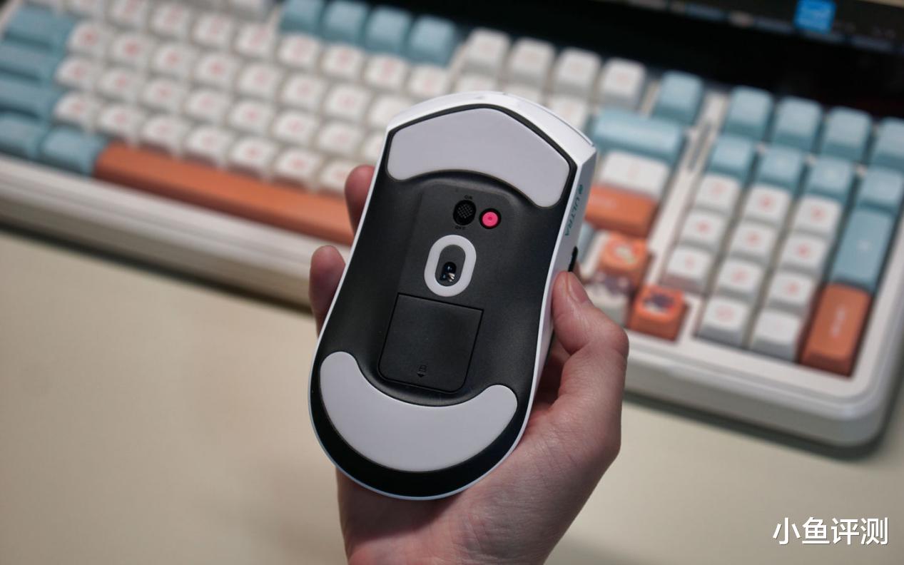 最后聊聊它的表面兼容性。得益于原相3950 Ultimate这颗引擎,它甚至宣称支持玻璃追踪。我特意在玻璃桌垫和磨砂玻璃上试了一下,竟然真的能用,虽然还是建议用布垫,但这技术储备确实有点东西。脚垫也是特氟龙含量很高的那种,滑动起来很顺滑,没有发涩的感觉。