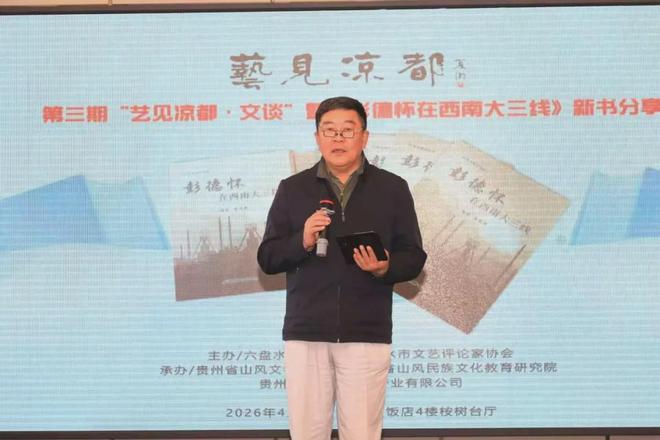 2026年下午1点30分,“艺见凉都·文谈”暨《彭德怀在西南大三线》新书分享会拉开序幕。六盘水市文艺评论家协会主席、六盘水市文学院院长杨小天参加此次活动,并致欢迎辞。