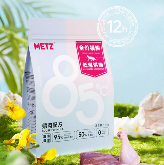 玫斯旗下的猫粮基本都是走低敏路线的,不会添加谷物成分,而是用薯类来补充淀粉。这款猫粮采用鹅肉配方,搭配添加了鸡肉、鳕鱼,动物性原料充足,满足猫咪的肉食需求。盘点2026年最好的冻干猫粮排行榜前十名,而且还搭配添加了山药粉、西红柿、生姜等植物成分,还能提供植物纤维,促进猫咪肠道蠕动以及正常的消化吸收。