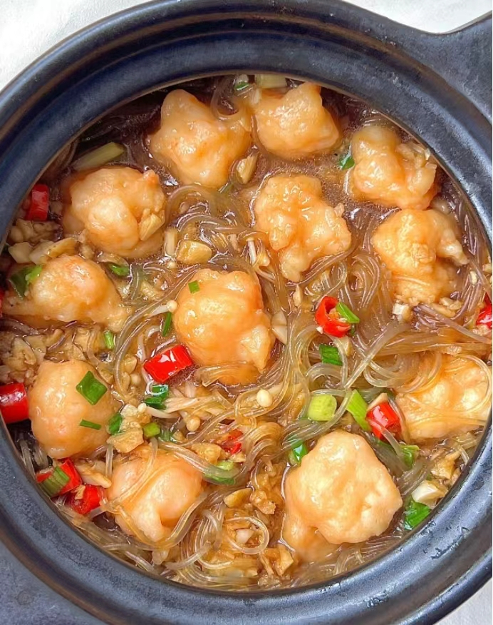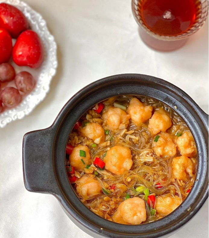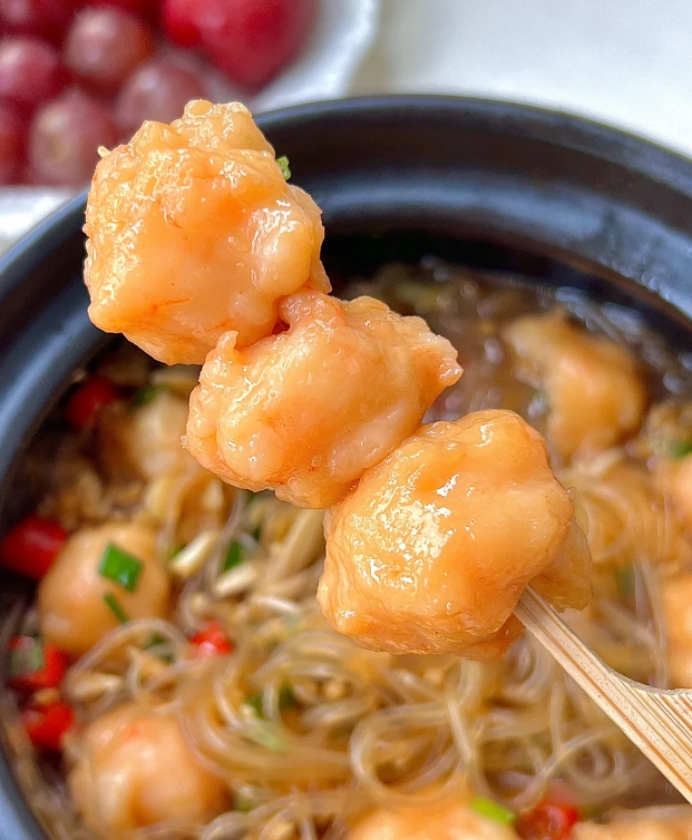 蒜香浓郁的蒜蓉粉丝虾滑煲,好吃到停不下来